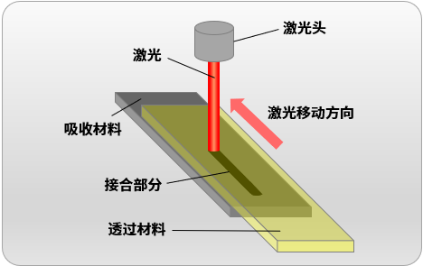 这是通过激光能量焊接两个成型品的技术。将“透过激光的材料”与“吸收激光的材料”组合起来进行操作。